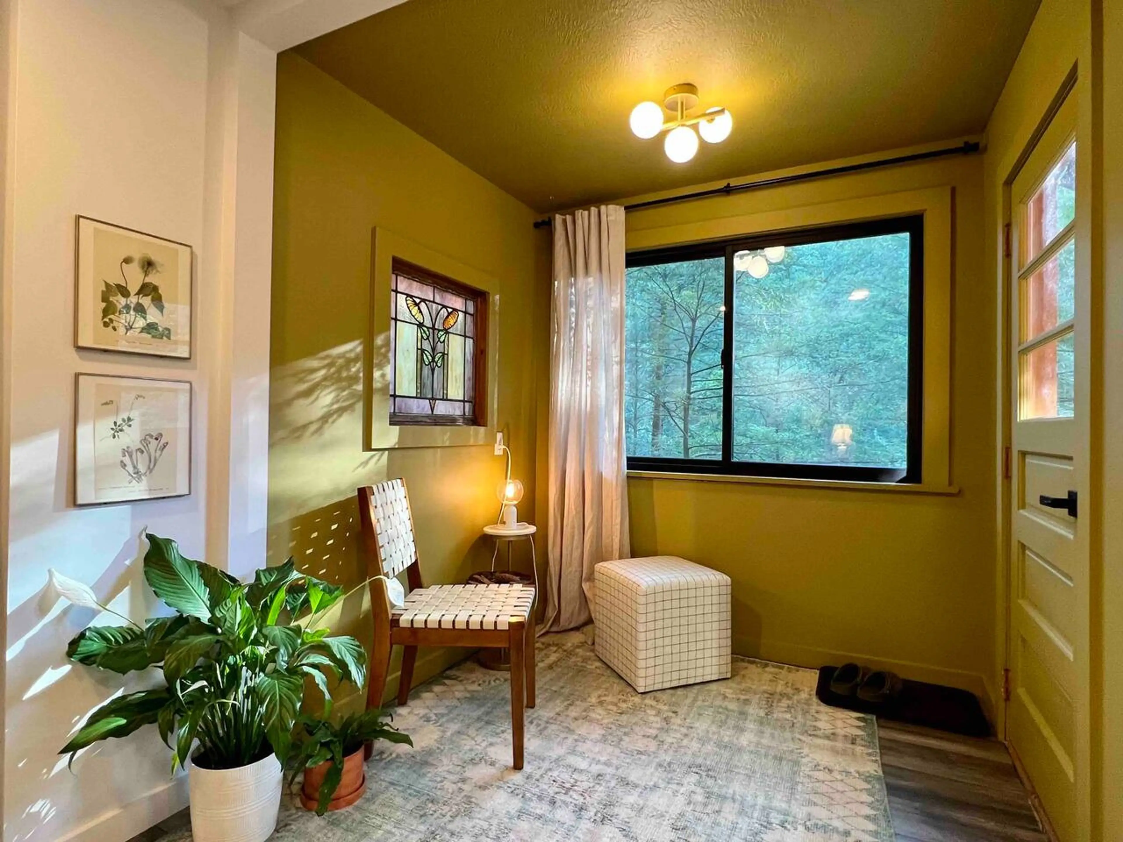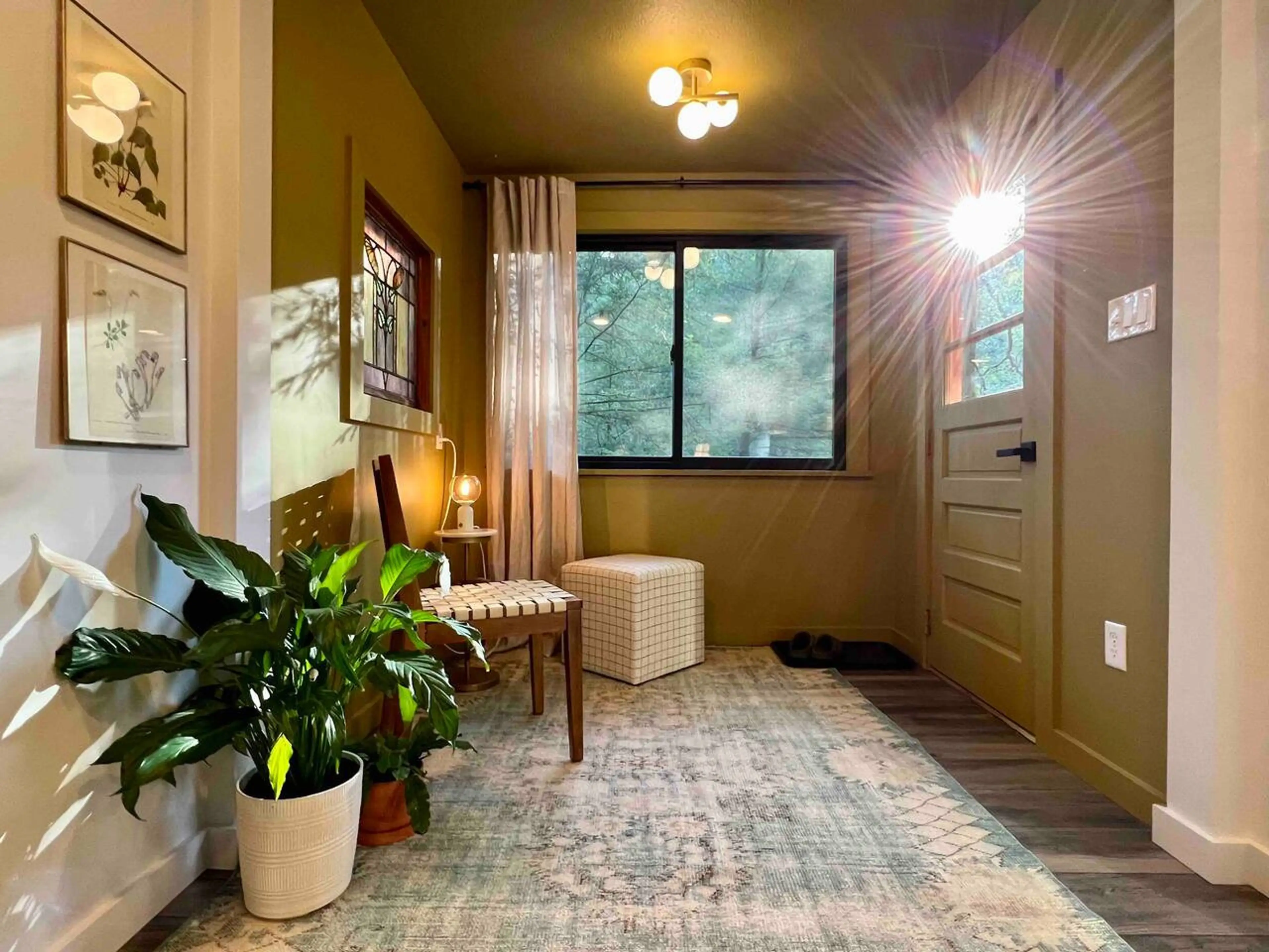 This property is off the beaten path but right on a river. Recently redone it is like a nest in the trees. It is mid trees height. We noticed the wild turkeys were roosting in trees close by.It was special. When they settled down so did we. Lovely inside. A caring host. A getaway hiking trip and just 1 night.